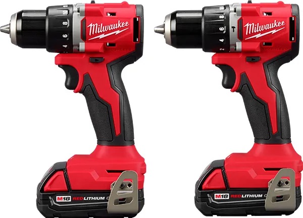 Ambos taladros estarán disponibles como herramientas básicas y en kits de 2 baterías. Las imágenes de productos de Milwaukee también muestran ambos modelos en kits promocionales de una sola batería y con otros tamaños de batería (como el taladro percutor con una batería XC 4Ah).