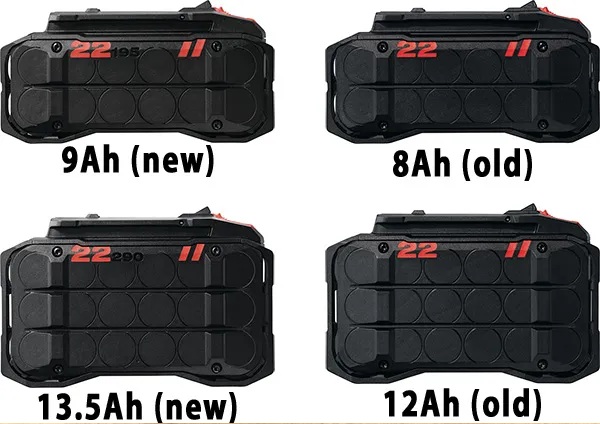La nueva Hilti B 22-195 (9Ah) parece tener el mismo tamaño que la batería B 22-170 de 12 celdas (8Ah).