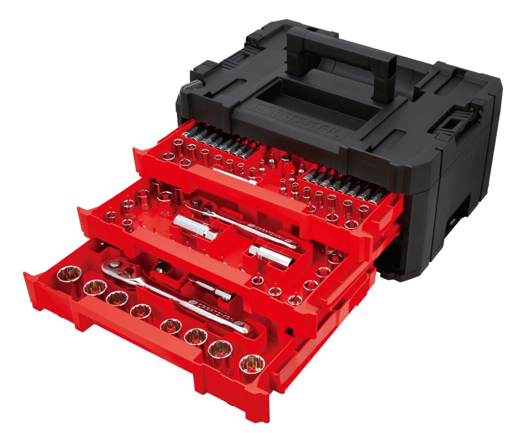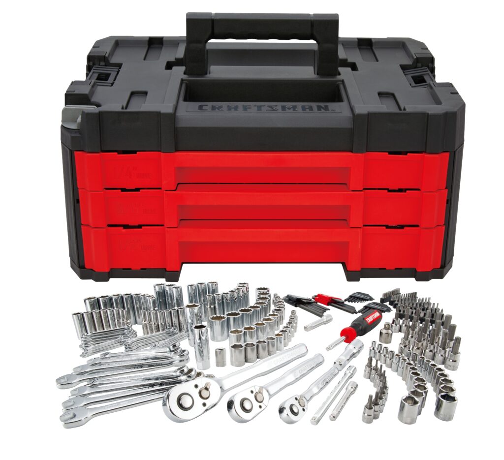 Los Premios a las Mejores Herramientas de Men’s Journal destacan las mejores herramientas en diversas categorías. Los editores probaron rigurosamente cientos de productos para garantizar su durabilidad, rendimiento y diseño ergonómico. El Juego de Herramientas Mecánicas CRAFTSMAN VERSASTACK™ de 262 piezas y 3 Cajones incluye una variedad de vasos, trinquetes, llaves hexagonales, llaves fijas, puntas especiales y otros accesorios ideales para realizar reparaciones en el hogar o el automóvil.