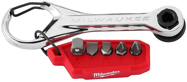 La carraca de puntas de Milwaukee tiene un portapuntas/organizador portátil.