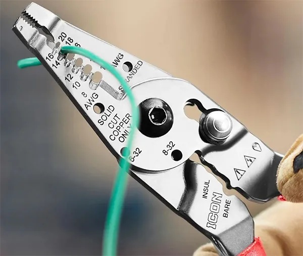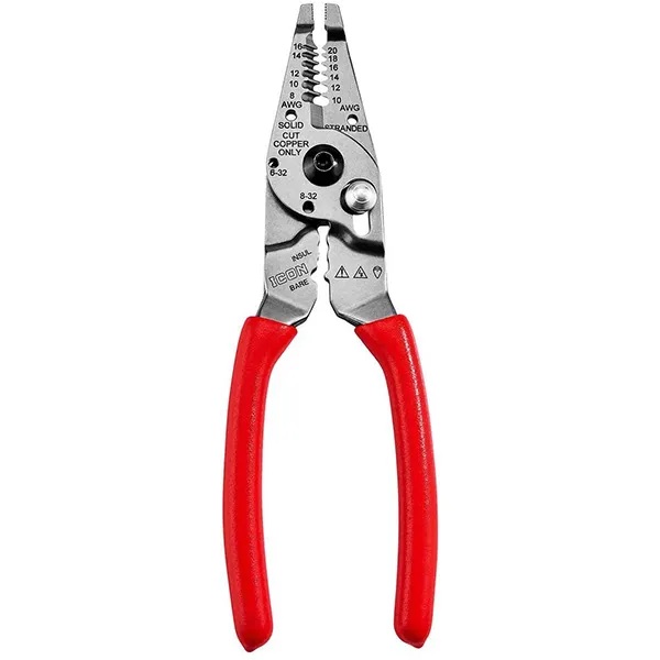 La nueva herramienta Icon de Harbor Freight es un pelacables de punta larga de 23 cm, un cortador de cables y una crimpadora de terminales.
