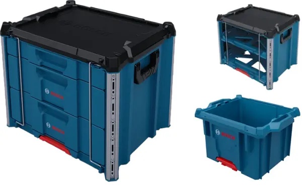 Bosch ha comenzado a presentar componentes adicionales del sistema de cajas de herramientas L-Boxx Contractor, como una caja de 3 cajones, una caja de 2 estantes y una caja de transporte abierta.