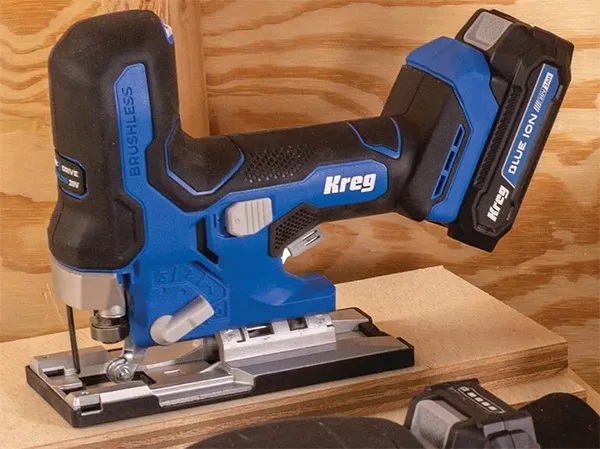 Esto nos permite ver más de cerca la sierra caladora inalámbrica Kreg Ionic Drive.
