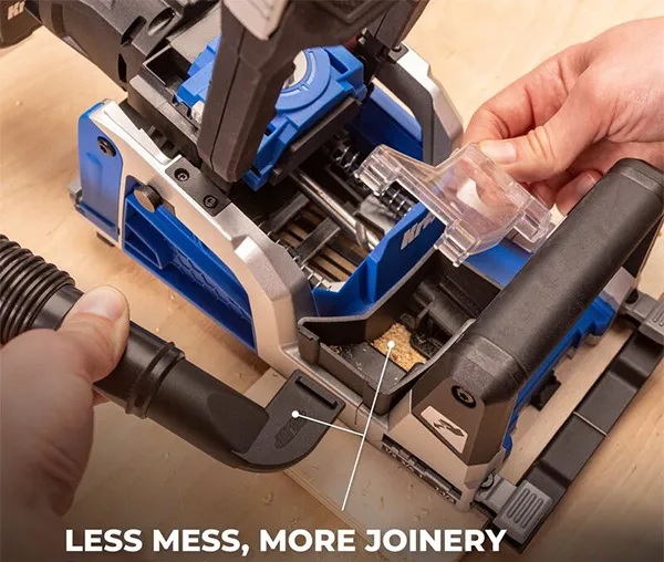 El Kreg Rebel también tiene un puerto de conexión para aspiradora para recolección de polvo, para ayudar a reducir el tiempo de limpieza.