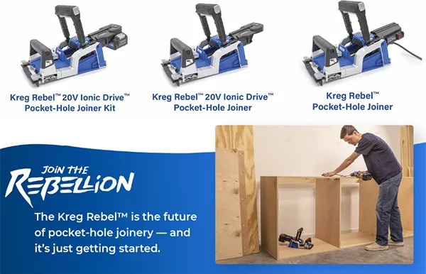 Kreg lanza la nueva máquina solo con herramientas. Próximamente estará disponible un kit completo de accionamiento iónico de 20 V y una opción de máquina con cable de CA.