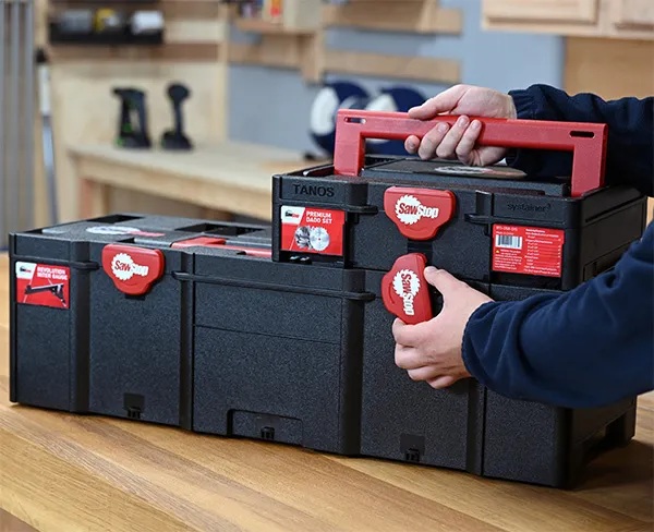 Como SawStop pertenece a la misma empresa que también posee Festool y Tanos, no es de extrañar que ahora tengan sus propios Systainers personalizados.
