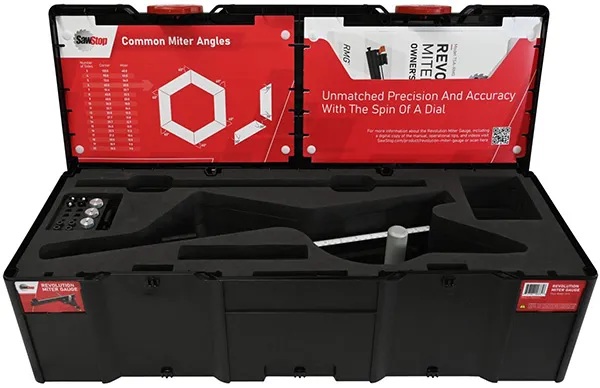 El calibre de ingletes SawStop Revolution Systainer me parece el más interesante, con un inserto de espuma profundo cortado a medida para mantener todo ordenado y protegido.