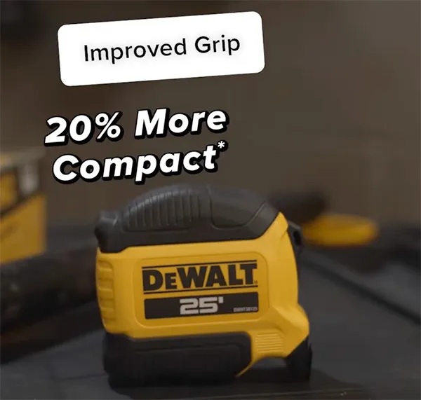 Dewalt afirma que su nueva cinta métrica tiene un agarre mejorado y es un 20 % más compacta que muchos de sus otros modelos.