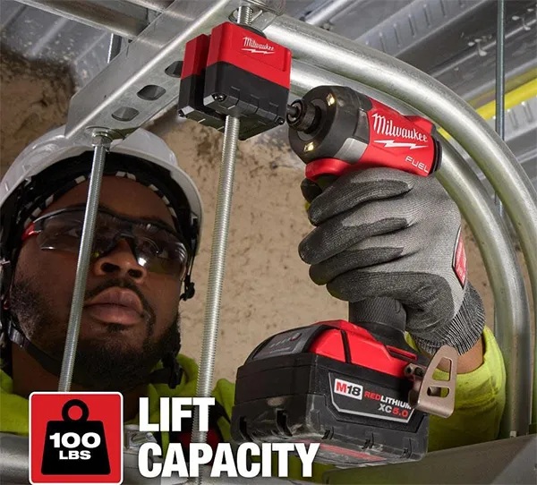 Milwaukee afirma que su nuevo accesorio ofrece el apriete de tuercas más rápido y tiene una capacidad de elevación de hasta 45 kg.